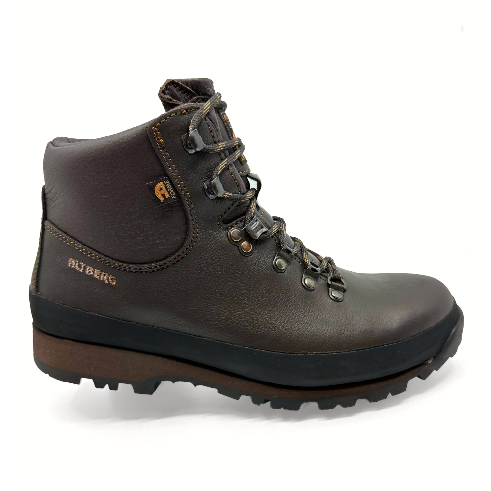 Lightweight 2-3 season leather walking boot. The Malham is a day hiking boot for hill waking on paths and trails. The leather is very soft and supple to give excellent comfort with very little ‘walking in required’. The Malham boot is made on the Altberg AForme last which has a narrow heel and waist, the toe of the boot is sprung slightly upwards, so that the boot rolls forward when walking, which enhances comfort and balance on hills and uneven terrain. The boot is very lightweight (672g size 9) and the micro layer between the sole and foot gives excellent shock absorption.