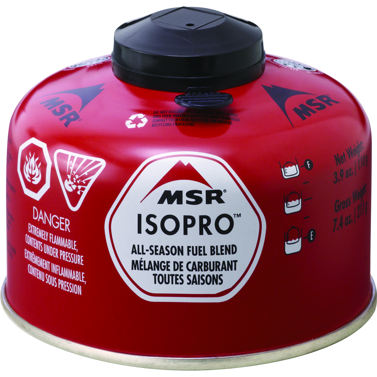 MSR IsoPro is a performance-boosting, 80/20 blend of isobutane and propane, with the purest isobutane (5% or less n-butane) of any canister fuel. This clean-burning formulation maintains higher internal pressure at lower temperatures than standard butane/propane mixtures, delivering superior cold weather performance and more consistent output over the life of the canister.